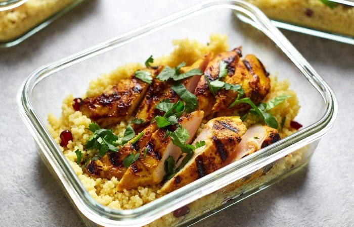 Ingredients: Chicken breast, couscous, chili flakes, garlic, olive oil.